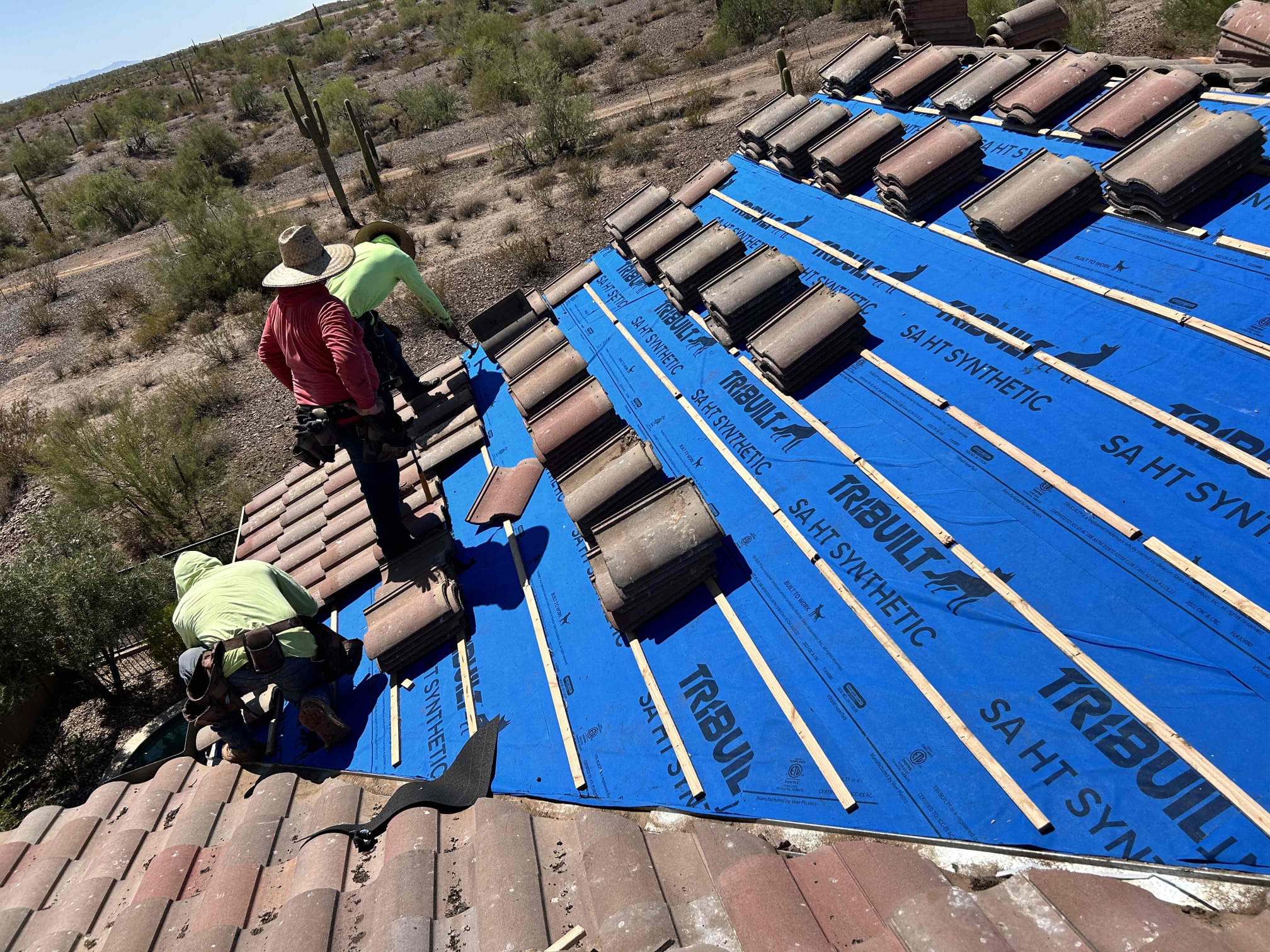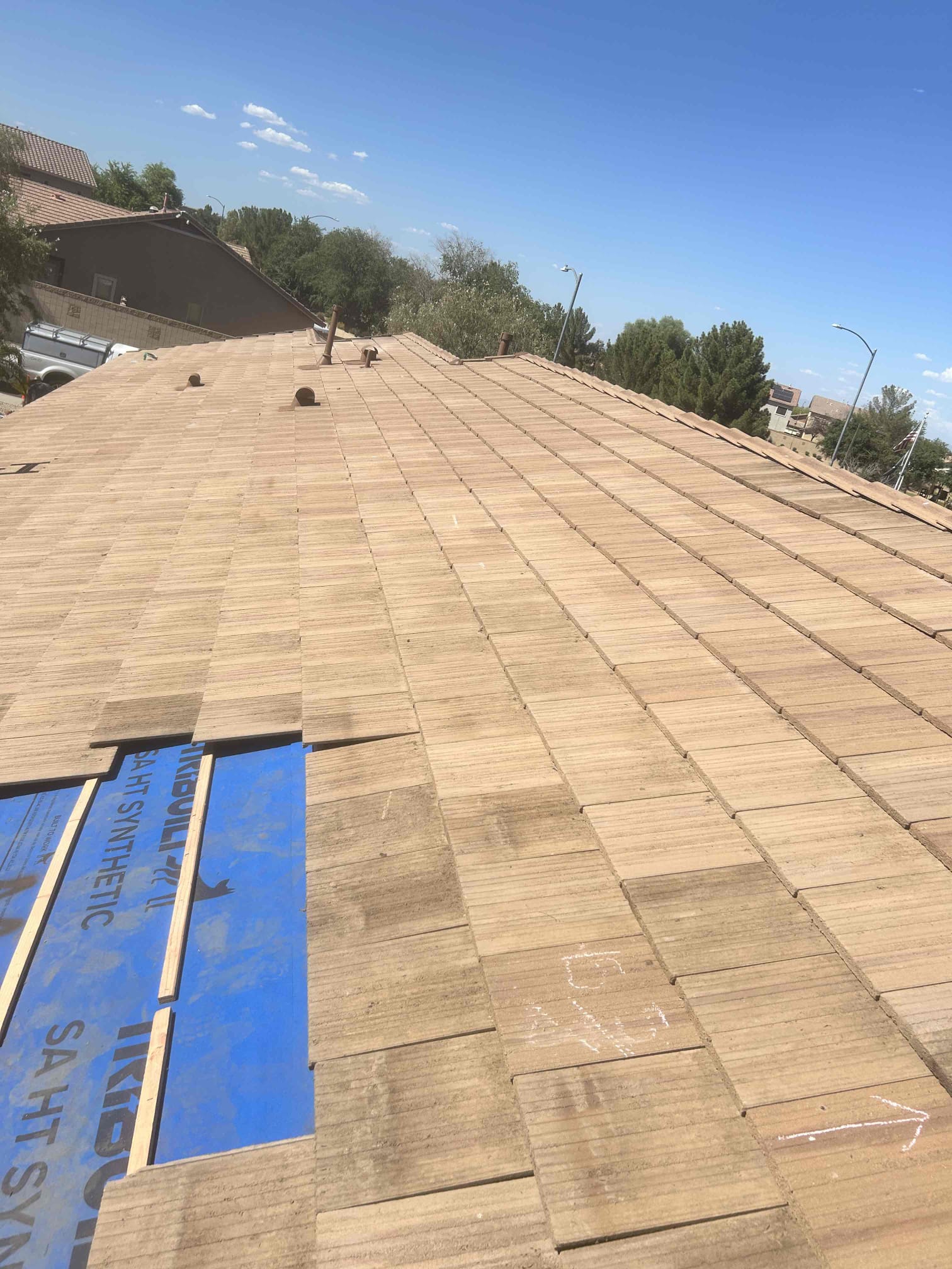 Legacy Roofing expertly addressed an active leak by performing a lift and reset on the West Elevation of a tile roof. We removed the existing roof and installed 14 squares of new tile, utilizing Tile Seal underlayment for enhanced durability. This meticulous process ensures long-lasting protection against leaks, providing homeowners with peace of mind and reliable roof performance. **Service Type: Roofing Repair**